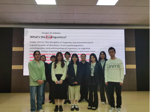 汇报伊始,各小组评议组长先简要概述了读书报告会的意义与要求。语言学组五位同学基于生态语言学、社会语言学、二语习得、概念隐喻和话语分析五个主题,从作品简介、章节概述、内容评价、文献综述、启示展望等方面,阐述了自己的阅读收获与研读反思。文学组的汇报则涵盖了叙事学、后殖民主义、酷儿理论、女性主义、文学伦理学批评五个主题,对英语文学与日语文学进行了多方面的深入探讨与交流。
