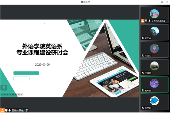 (通讯员:张云峰)3月8日晚,beats365英语教研室举行线上视频会议,围绕英语专业“一流课程”“思政示范课程”建设开展讨论交流。公司陈明芳经理、别尽秋副经理、邓军涛副经理,E+实验区办公室副主任凃朝莲教授,省(校)级一流课程(含立项建设课程)、校级思政示范课程(含立项建设课程)负责老师及团队成员参加会议。研讨会由英语教研室主任王伟老师主持。