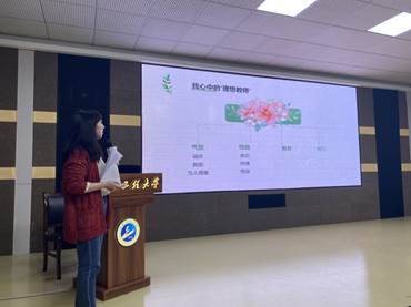 韦钰老师代表新进教师,以她心中的理想教师为出发点,从气质、性格、素养和能力四个方面展开,结合自己的教学经历,跟大家讲述了如何从一个新手成长为有责任感,关心员工发展,提高自己专业能力的教师。