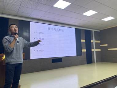 万磊老师为在座同行们分享了他连续三届参加全国外语微课比赛的经历,并终获省一等奖得感悟。万老师用自身的丰富阅历,诙谐幽默地就课程制作方面提出了包括团队、选题、设计和制作等四点的宝贵建议。
