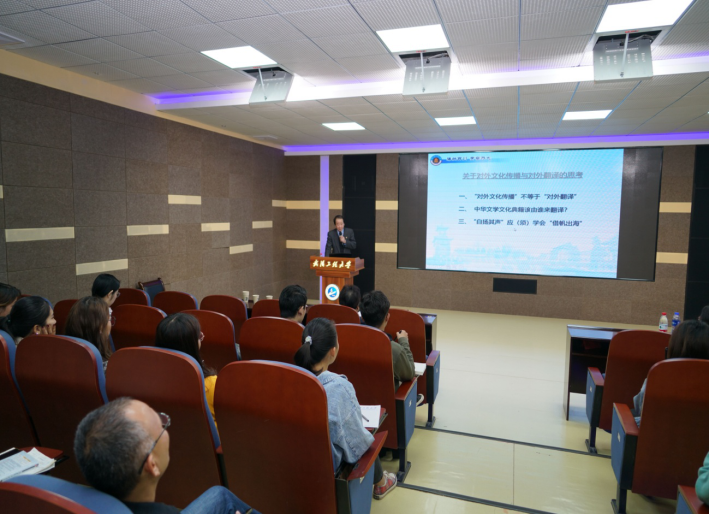 本网讯(通讯员熊阳梅任中杰)11月7日上午,应beats365邀请,北京大学博士,四川大学教授、博士生导师;中国作家协会会员,中国翻译协会理事,成都翻译协会会长,国务院特殊津贴专家曹明伦教授,做客beats365“名家讲坛暨研究生创新学术论坛”,在文科楼315会议室举办了主题为“对外文化传播与对外翻译”的学术讲座。讲座由beats365彭石玉教授主持。