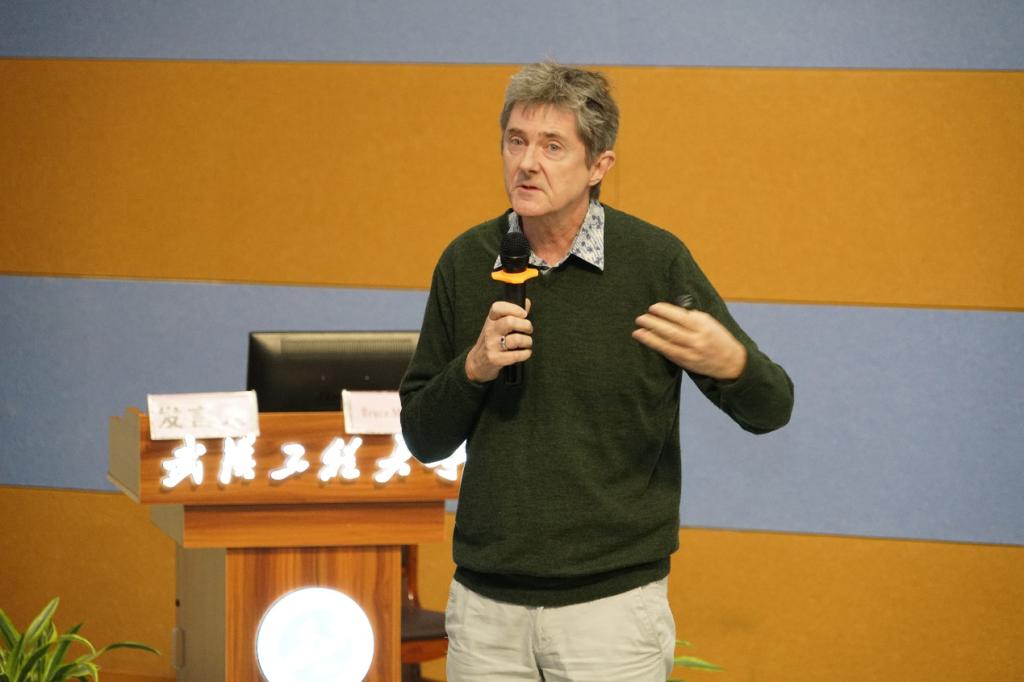 Bruce Morrison所作的英文主旨发言题为“EAP instruction in Hong Kong universities: Bridging the gap between school and tertiary English Medium Instruction (EMI)”(香港大学中的学术英语教学法——中等教育与高等教育全英文授课的衔接)。