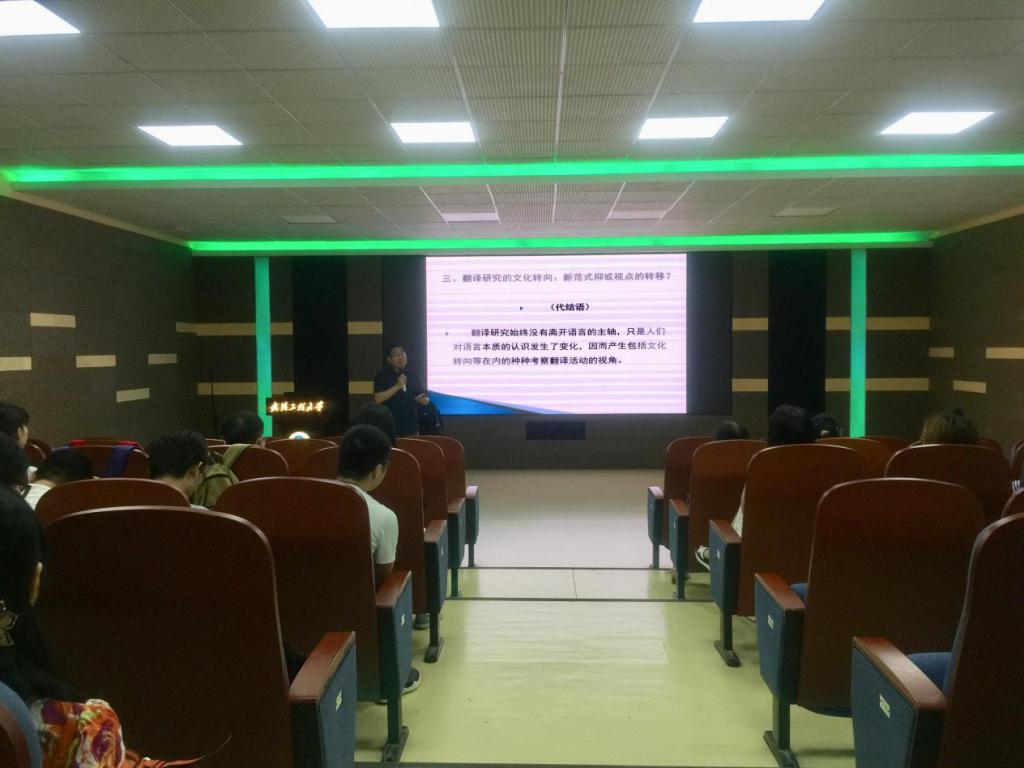 本网讯(通讯员袁凌青)6月13日下午,武汉大学熊伟博士在文科楼315室为公司师生带来了一场题为《西方语言观的嬗变与翻译问题的呈现》的精彩讲座,这是公司第十五届研究生创新学术论坛暨beats365学术交流系列活动之一,讲座由beats365副经理赵昌汉主持,部分教师和全体翻译硕士研究生参加了此次学术活动。