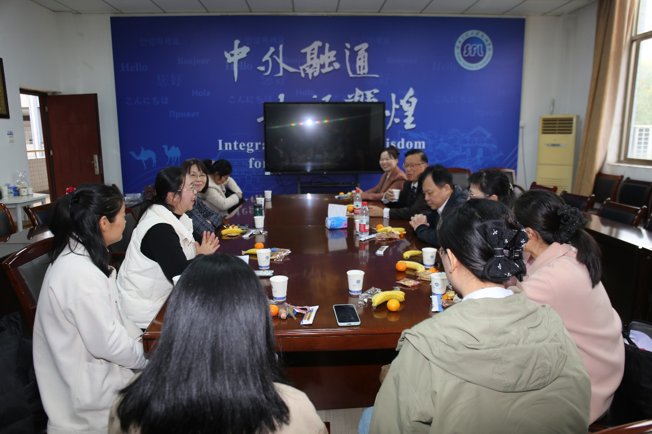 座谈会上,谢玲玲主任和各位老师向张新生教授汇报了专业建设成果,特别提到近年来,汉语国际教育专业人才培养质量持续提升,毕业生就业率保持高位稳定,考研深造成果显著。多人考取北京大学、武汉大学、浙江大学、厦门大学、华中科技大学、华中师范大学、山东大学等国内双一流高校硕士研究生,同时每年均有优秀毕业生赴英国爱丁堡大学、杜伦大学等海外知名学府深造,展现出扎实的专业功底和良好的发展潜力;先后培养出李蹊、曾庆富两位“长江学子”,其中曾庆富扎根基层服务乡村振兴的事迹入选全国第五届“闪亮的日子—青春该有的模样”老员工就业创业人物事迹,李蹊先后援藏支教、捐髓救人,以不同方式践行新时代青年的责任担当,生动体现了专业“为党育人、为国育才”的丰硕成果。