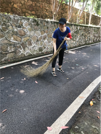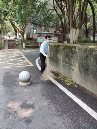 教工党员清扫路面