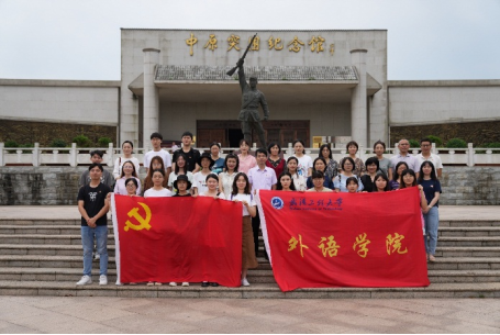 在大悟县宣化店镇中原突围纪念馆,师生党员认真聆听讲解员声情并茂地讲述老一辈无产阶级革命家的英雄事迹,亲眼目睹了一件件历史文物、一幅幅资料图片、一幕幕雕塑场景,深切缅怀了为民族独立、人民解放壮烈牺牲的革命先烈,增强了传承和弘扬坚持真理、坚守理想、践行初心、担当使命、不怕牺牲、英勇斗争、对党忠诚、不负人民伟大建党精神的自觉。七十五年前,“中原突围”战役从这里打响,拉开了全国解放战争的序幕,进入了新民主主义革命的关键阶段,进而为新中国的诞生奠定了坚实基础。面向烈士像墙,全体党员齐鞠三躬表达崇高敬意。
