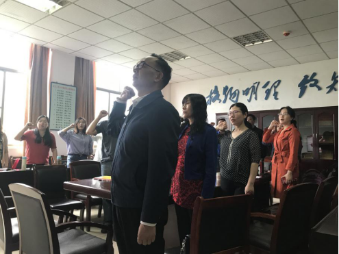 本次主题党日活动由教工一支部书记陈玢主持。活动议程包括全体党员起立、唱国歌;公司党委书记陆新领诵入党誓词;各支部汇报本月党费收缴情况。