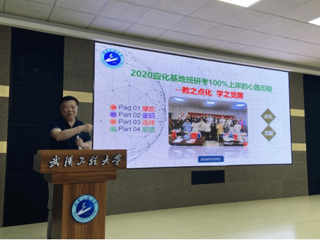 接着,袁华教授向在座的老师和员工们详细讲述了他所带的2020级应化基地班今年考研全员上岸的心路历程,从老师引导、会议推进、员工精进、班风建设等方面分享了基地班成功出圈的经验,并提出了“每个员工都必须知道自己从哪里来,要到哪里去”的期望。