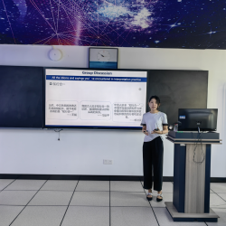 竞赛是知识的凝练,考察的是在短时间内能抓好、讲好、用好课程重点,考察的是教师个人的综合素质,通过融入政治,讲好大思政让教师更能在忙碌中沉下心来思考教育的本质与目的,以《高级口译》课程为例,我一直在思考如何既锻炼员工口译的实践能力,又能让他们从全局思考,具有全球视野。气候变化,还有单边主义、极端主义、日益拉大的贫富差距等等这些复杂的挑战,都需要我们新时代的青年人来思考解决,来投身和平事业,投身中华民族伟大复兴事业。