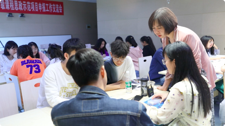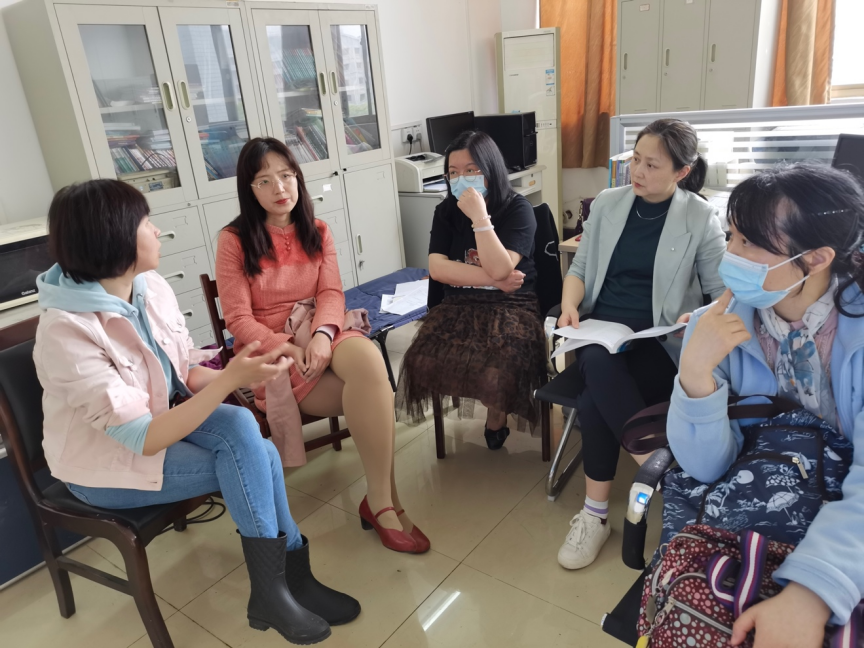 (图二:团队老师们探讨教材和试讲内容)