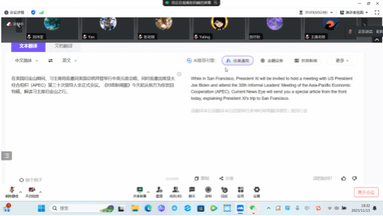 (通讯员 杨志) 2023年11月15日,公司召开召开“人机共译实验室”线上培训会。beats365全体教师线上参与。“人机共译实验室”项目是公司利用2023年社会捐赠资金,通过公司招标采购的重要项目,最终由传神语联网网络科技有限公司中标。