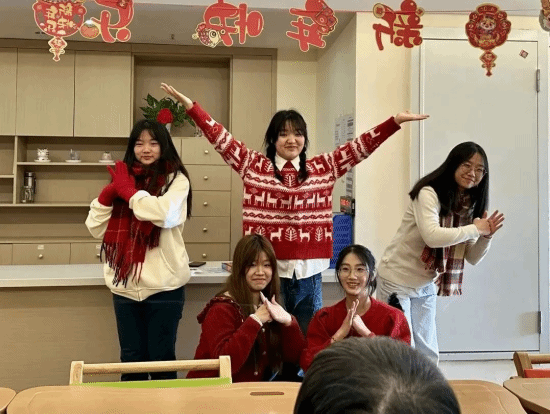 为丰富老人们精神文化世界,志愿者们还特意准备了文艺汇演活动。志愿者们提前排练了《好运来》舞蹈和《光阴里的故事》《唱支山歌给党听》等歌曲节目,用心用情为老人们进行表演。
