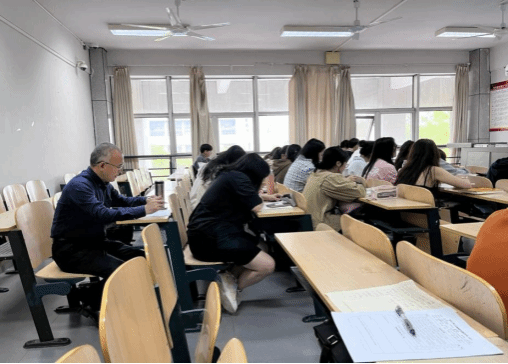 英专教研室副主任张云峰老师在课堂上认真听课