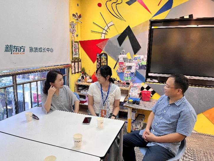 陈明芳经理一行实地参观了实习生的教学环境,观摩了学员课堂,并与新东方校区负责人及实习指导教师展开座谈。新东方代表高度评价武工大学子,称赞其“专业基础扎实、教学实践能力突出”,并特别提及实习生在教学环境中的快速适应能力。