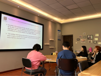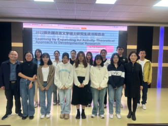 语言学组五位同学基于二语习得、认知语言学、生态语言学、话语分析和活动理论五个主题,从作品简介、章节概述、内容评价、实例研究等方面,阐述了各自的阅读收获与研学反思。文学组的汇报则涵盖了文学伦理学批评、女性声音与女性意识等主题,对英语文学与日语文学相关选题进行了多方面探讨交流,并展望了未来的前沿研究方向。