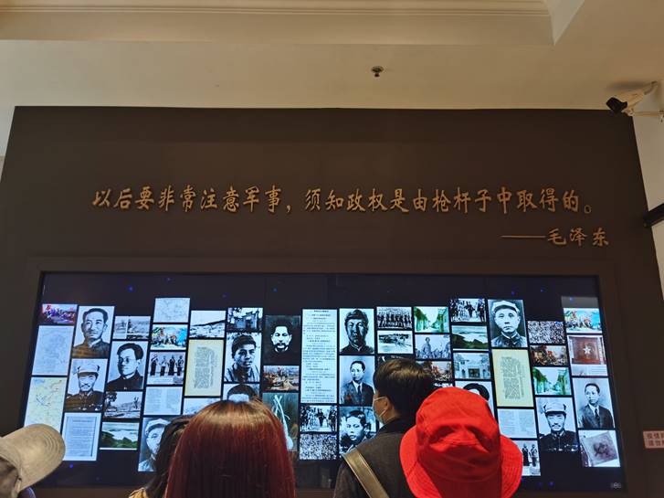 二楼复原了八七会议的现场,简单而朴实。在八七会议场景复原图前,大家驻足良久,仿佛回到了身着长衫、操着湖南口音的毛泽东激昂地说着“以后要非常注意军事,须知政权是由枪杆子中取得的”的峥嵘年代,深刻领悟到八七会议是一次在历史转折的危机关头挽救党、挽救革命的重要会议。