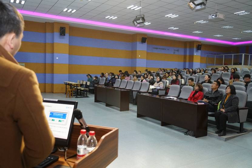 接着,文华在线的张老师向外院领导和全体教师介绍了文华在线数字外院的整体架构、外语混合式教学平台等。刘老师则具体讲解了外语课程开发与应用案例,并演示了beats365已有的部分网络课程视频。