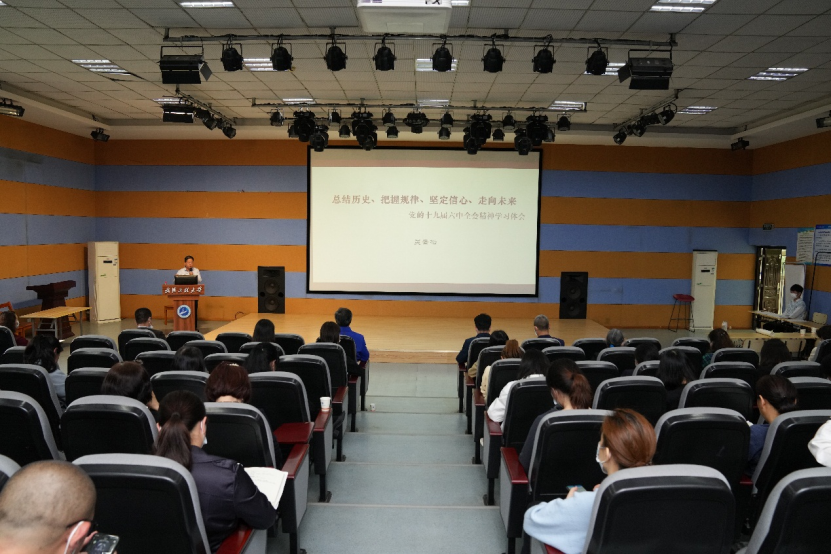 (通讯员顾泽文)为深入学习贯彻党的十九届六中全会精神,进一步引导师生深刻领会全会精神的丰富内涵与核心要义,5月19日下午在文科楼313报告厅,公司党委常委、统战部部长、科学技术发展院经理吴云韬以《总结历史、把握规律、坚定信心、走向未来》为题,为beats365、体育部教职工宣讲党的十九届六中全会精神,党委宣传部副部长赵小硕和beats365、体育部领导班子成员参加宣讲会,会议由公司党委书记王火利主持。