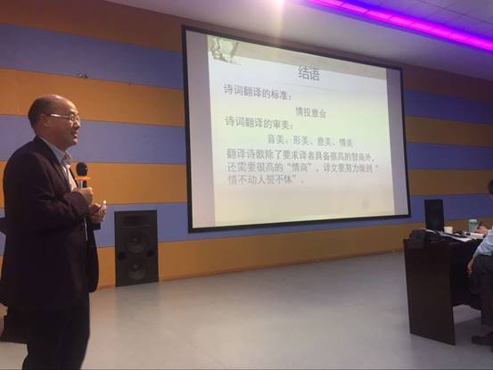 On April 26, 2017,Professor Xie Yanmingshared his ideas about the translation of classical poetry from Chineseinto English with the teachers and students from School of Foreign Languages of WIT.