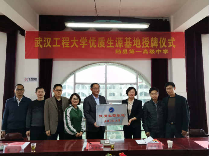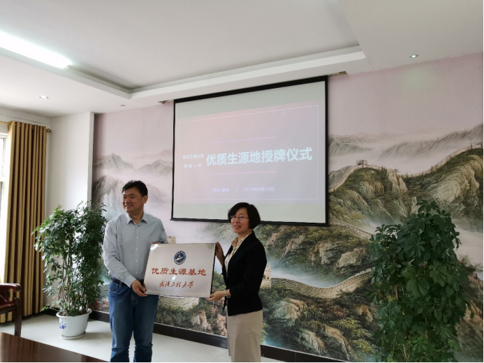 宣传组一行受到了四所高中领导的热情接待。郑丹凤代表公司对各生源中学表示衷心的感谢,感谢他们长期以来对公司招生工作的大力支持,感谢他们为公司输送了大量的优质生源。她指出,工大是一所办学历史悠久、特色鲜明、优势突出、近年来办学质量快速提升的普通高等院校。希望工大与各生源中学加强交流合作,互通信息,增进了解。郑丹凤表示,时值高考制度改革契机,公司愿进一步加强与高中公司的衔接,把高中和高校更顺畅地搭在一起,共同贯彻落实党和国家教育方针政策,携手为员工的成长成才提供平台,为社会各界和家长的期盼交上一份满意的答卷。郑丹凤还分别为随县一中和曾都一中颁发了优质生源基地匾牌。