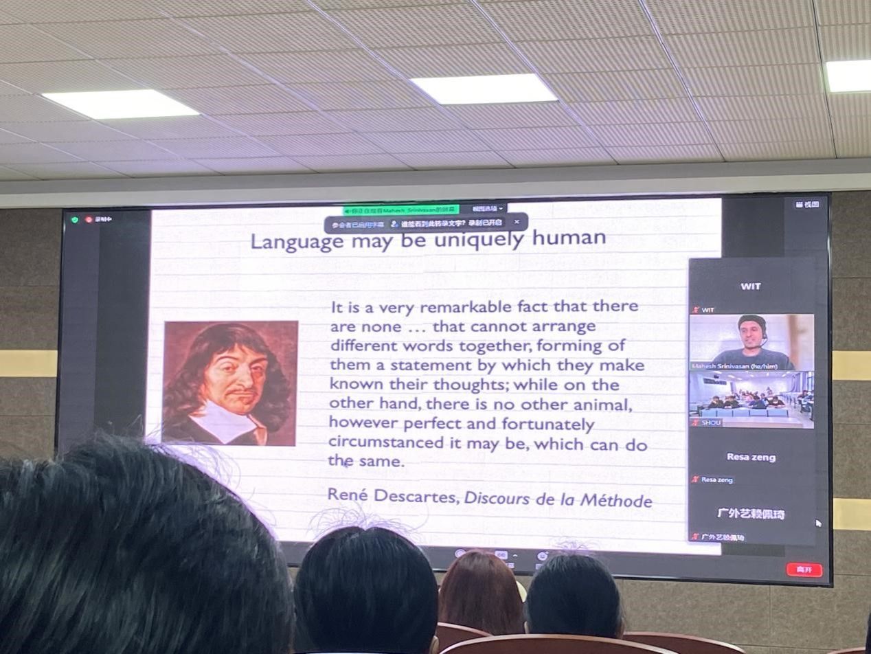 (通讯员 赵倩妮 张静静)2023年5月27日上午,beats365在文科楼315报告厅举办国际高端学术讲座。本次讲座的主讲专家为加州大学伯克利认知心理学终身教授——Mahesh Srinivasan。讲座主题为“语言的起源与语言学习”。本次讲座由beats365主办,国际交流与合作处承办。beats365本科生、研究生和部分教师参与聆听本次讲座。
