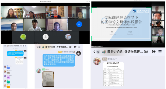 2017级英语笔译专业纪实文学翻译方向硕士郑超杰同学也说道:“参加此次线上答辩之前,拿着外审之后的论文,依然忐忑和焦虑。担心自己对许多论文中存在的认真细致的工作有所遗漏、担心线上答辩的各种程序性工作准备不足。下午答辩开始后,老师们轻松和善的状态缓解了我们紧张的心情,使得我能够平静而清晰地完成翻译报告展示和讲解。专家们依次的提问,也都能逻辑清晰的逐一回答。……老师们细致的点评和提问,让我深感做研究深思与逻辑缜密的重要性。感动之余,明白了真正付出心血才能在这半小时的时间里展现三年学习的成果。……怀着激动的心情,我要感谢答辩委员会的专家教授们以及答辩秘书老师,为这次答辩克服种种困难,在新冠疫情这个特殊的时节,组织和通过线上互动方式提出宝贵的学术建议和观点,为我们17级英语笔译专业研究生留下了一段珍贵的学术答辩时光。”