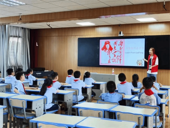 “Learn from Lei Feng”,在双语教学课堂中传出孩子们整齐而明朗的读书声。公司志愿者在教学备课中将“思政元素”融入教学,设计《学习雷锋好榜样》双语课程。志愿者老师们从“认识雷锋”讲起,与孩子们一起了解雷锋事迹,观看学习雷锋精神主题教育片,并穿插英文单词和短语记诵,引导孩子们学习雷锋身上甘当“螺丝钉”和“全心全意为人民服务”的宝贵精神。