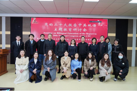 在专题交流环节,六组师生代表分别以“党的二十大报告双语热词的理解与表达”“党的二十大报告同构词汇与短语的翻译”“党的二十大报告中隐喻及指示语的运用及其语用效果”“党的二十大报告英译本语篇衔接机制研究”“中华优秀传统文化翻译与传播”“党的二十大报告与外语课程思政的深度融合研究”为题,从语言文字、跨文化交流、翻译策略、对外传播、课程思政等不同角度,展开全面系统深入交流探讨。