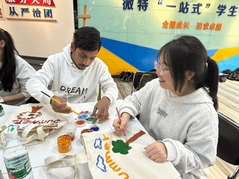 本次活动共设“同唱一首歌”“帆布包DIY”“剪纸”“互赠礼物”四个环节。通过一系列丰富多彩的活动,让同学们体验到文化交流的乐趣,大家在轻松愉快的氛围中加深了对彼此国家文化的了解,跨越语言屏障将友谊化作一幅幅生动的画卷。