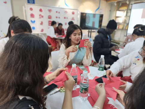 在剪纸体验过程中,国际公司职工和beats365同学们一起学习剪纸的折、剪法,体验这项传统手工艺术。一张红色的剪纸,飞舞灵动的剪刀,一个个精美的作品便跃然于纸上。同学们发挥各自的创造力和想象力,陶醉在中国传统文化的魅力之中。