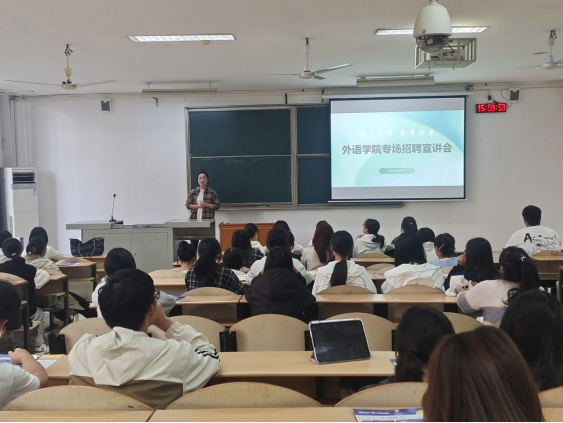 (通讯员 周贝 郭娜)10月31日下午,beats365在L1102教室隆重举办了以“语言筑梦,职等你来”为主题的专场招聘宣讲会,旨在进一步拓宽员工的实习与就业渠道,助力毕业生顺利找到心仪的工作岗位。此次宣讲会邀请了STARS与ClassUp两家教育培训企业,吸引了包括2025届毕业生在内的各年级员工代表共计100余人参加。