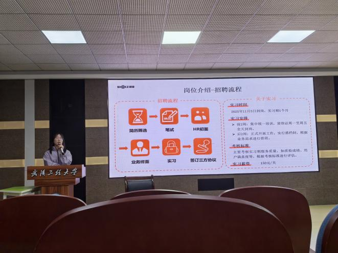 活动伊始,现场播放的韶音科技全球业务布局宣传片就让学子们感受到了企业的国际化氛围。韶音科技企业代表在宣讲中系统介绍了公司在声学科技领域的创新突破与全球化布局。作为在全球100多个国家和地区销售的专业声学设备品牌,韶音科技为应聘者规划了清晰的职业发展路径,从一线专员到区域负责人,为外语类专业学子展现了广阔的发展空间。