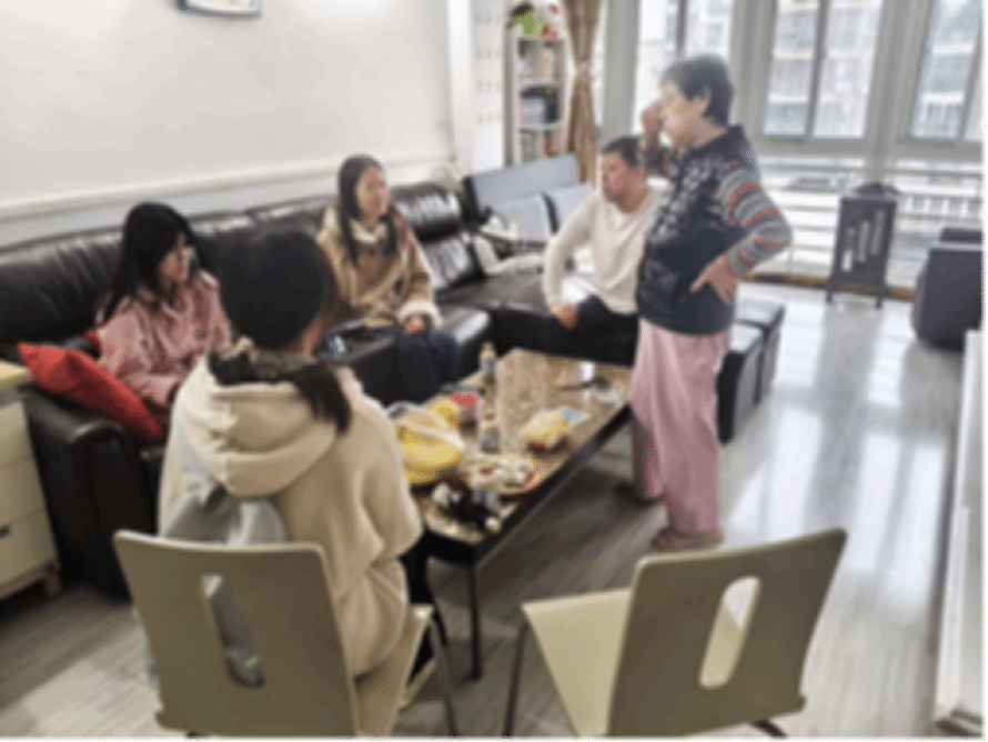 随后,家访小组来到王佳贝同学家中,与员工及其外婆、父亲进行了深入座谈。李敏辅导员首先向家长反馈了王佳贝在校的良好表现:课堂参与积极、学业态度端正,即便骨折后仍坚持兼顾康复与学习,展现出极强的韧性,并将专业同学的高度赞扬传达给王佳贝及家长,针对王佳贝同学的学业辅导的需求,小组现场协调班长、学委为其同步课堂笔记,并对接任课教师提供课后线上答疑便利。