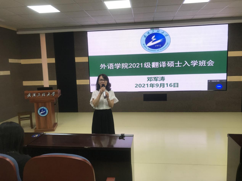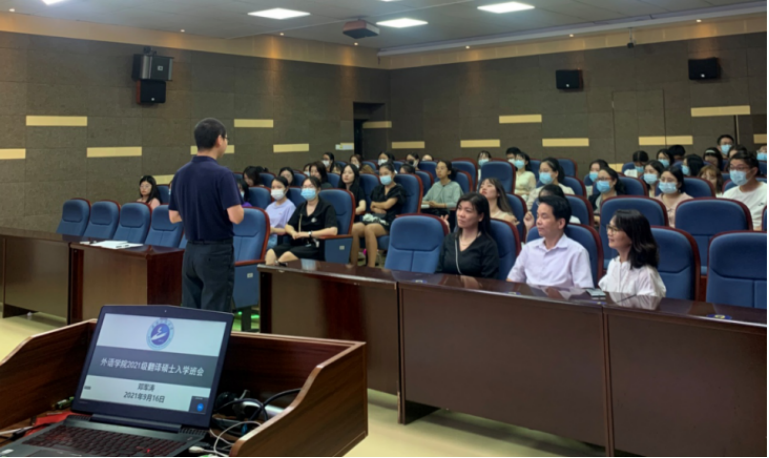 (通讯员:徐星瀚杨杰浩)9月16日晚,2021级翻译硕士入学班会在文科楼315报告厅举行。会议由经理助理邓军涛主持,党委书记王火利、经理陈明芳、副经理别尽秋、研究生教学秘书陈梅出席会议。本次会议采取线上线下混合方式进行,2021级70名翻译硕士研究生参加学习。