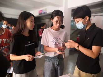 辅导员来到寝室为同学们登记注册