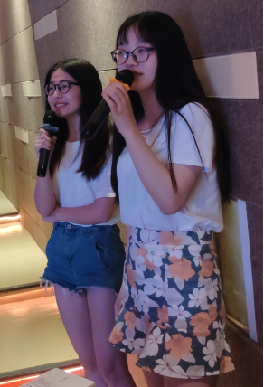 大家心想,这可是师生联谊卡拉OK呢,怎能少了师生合唱呢?于是凃朝莲老师和周丹同学为大家带来了一首合唱《至少还有你》。是的,学习路上我们总会遇到各种困难,但是不要怕,至少我们还有这么多的好老师和好同学呢!