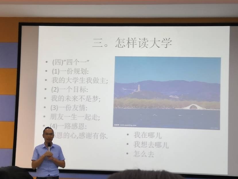 在分享“怎样读大学”时,陆书记通过“八目”和三个“爱人”理论,生动地解释了这个很多同学直到大二大三都很难弄懂的问题。在讲课的最后,陆新书记殷切的提出了几点希望与要求:新生尽快熟悉老员工活、学会学习、学会求知、学会做人、学会规划。