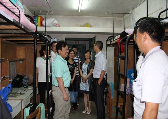 每到一个寝室,一行人都仔细询问员工目前的情况,叮嘱孩子们在遇到问题时要及时联系老师,没有解决不了的问题,办法总比困难多。党委书记彭石玉教授表示希望大家在大学四年里住的舒心,学的开心,学有所成。