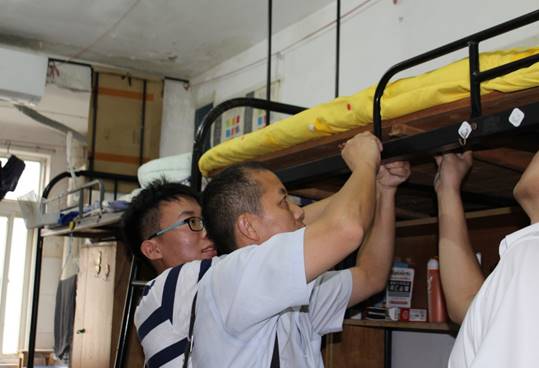 当看到员工铺位安全防护栏缺失,为了避免安全隐患,赵经理亲自帮员工加固床上的安全防护栏。新生感到特别温暖,十分感谢老师的辛苦付出,为老师的“暖男”风范点赞。