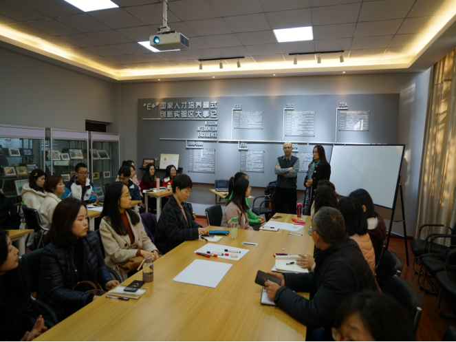 王振洪老师向大家简短介绍了Peyman Sabet博士。活动伊始,Peyman首先给出三个启发性的问题让大家进行分组讨论,以此发现我国英语课堂中的普遍性问题:TTT(teachers’ talking time)远大于STT(students’ talking time)。 Peyman教授建议老师们把课堂时间更多地交给员工练习,让员工在探索中学会自主学习,并就如何让TTT更加高效列举了许多可操作的细节,如教师的说话方式、语调、简单的句式、严谨的用词和眼神的交流等等。紧接着,Peyman教授提出“教师要先学再教,教师自己是终身的学习者”和“学习是通过强化练习来改变行为、知识和技能的一个过程”的教育理念。对此,Peyman教授谈到有效的语言练习的几个特征,如语言的使用、口语活动、发音、预习、练习量、成功地习得等,并强调在这个过程中要强化员工成功的语言学习者的自我形象。之后,Peyman教授提到教师的作用是给每个员工平等的机会、辅助员工、激发兴趣、给出简洁有效的指令等。最后,Peyman教授为师生就课堂教学中出现的问题作出了针对性解答。活动现场气氛热烈,师生获益匪浅。