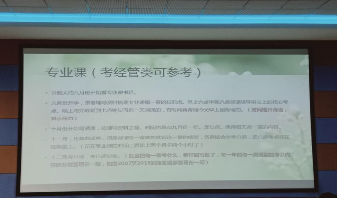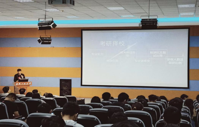 在此次活动中学长学姐们也做了充足的准备,有精心制作的ppt和流利顺畅的解说。本次活动不单单涉及到考研,还讲了有关于学硕和专硕的区别、如何对待自己的优点和不足之处、