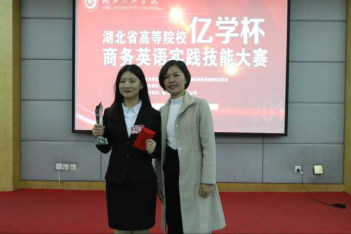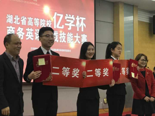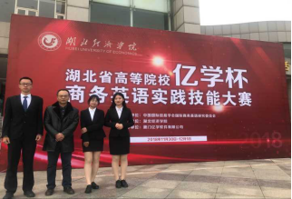 (通讯员 王绘景)2018年11月30日至12月1日,湖北省高等院校“亿学杯”商务英语实践技能大赛在湖北经济公司举行。公司“英语+市场营销”专业2016级邓傲芳、朱勇同学与2017级王绘景、叶亦翔同学在林云华与王堃老师的指导下,一路过关斩将,获得团队二等奖!王绘景同学被评为全场唯一的优秀选手!此次赛事由中国国际贸易学会国际商务英语研究委员会主办,湖北经济公司承办,厦门亿学软件有限公司协办,中南财经政法大学、华中农业大学等二十所高等院校组队参加了此次比赛。