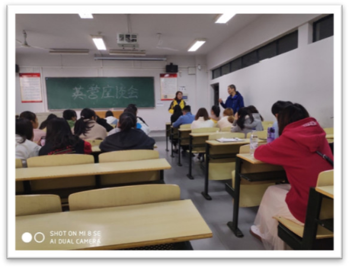 凃老师表示,本次的座谈会将主要围绕“教学质量提升”、“专四经验交流”以及“E+实验区的建设”这三个方面展开讨论并请同学们积极出谋划策,为实验区建设以及教学质量提升添砖加瓦。
