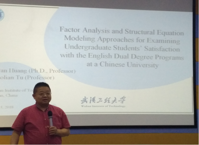 (本网讯通讯员曾凡婷)5月24日下午,美国尼亚加拉大学终身教授,外语学院楚天讲座教授——黄金岩走进“E+”实验区,用全英文给同学们做了一场题为“Student Satisfaction with English Dual Degree Programs”的讲座。