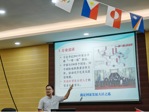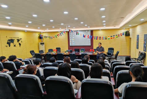 黄炎忠博士从国际经济与贸易专业的角度出发,深入浅出地介绍了专业的独特之处、核心课程、团队力量、员工竞赛成果以及毕业生就业状况,进一步增强了新生们对自己所选专业的信心。他指出,选择英语(辅修国际经济与贸易)专业不仅是顺应国家发展的需要,更是实现个人价值和职业理想的明智选择。