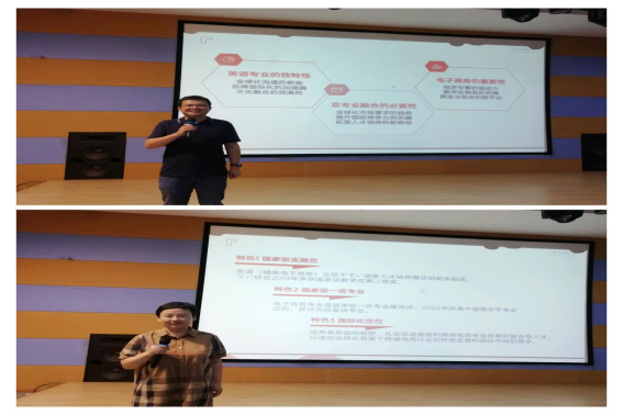 管理公司管理科学与工程系的黄珂老师和万庆老师则进一步阐释了英语(辅修电子商务)专业的独特价值与社会需求。他们指出,该专业融合了语言与商务的双重优势,是适应当前全球化趋势、满足市场多元化需求的优质选择。两位老师的发言,不仅增强了新生们的专业认同感,也坚定了他们投身该领域、实现个人价值的决心。