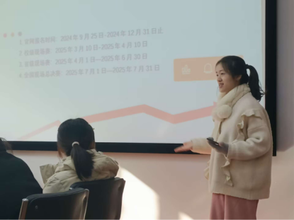 会议伊始,闫曦老师首先上台,详细讲解了学科竞赛和课程学习对于员工个人成长及学术发展的重要性。她强调,参与学科竞赛不仅能够提升员工的专业素养和实践能力,还有助于拓宽视野,增强团队合作意识。此外,闫曦老师还为同学们在中语智慧教学平台上开设专班,动员同学们利用寒假积极参加线上实操,为学科竞赛做好准备,把握机会,挑战自我。