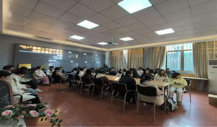 本网讯(作者 闫曦 高婷)12月24日上午,24级英语(辅修电子商务)专业01班在文科楼119举行师生座谈会。会议由英语(辅修电子商务)专业负责人闫曦老师主持,到会的嘉宾有班主任张云峰老师,以及优秀学姐胡云云、廖乙蔓、杨家乐、王可遇,以及24级英语(辅修电子商务)专业全体同学。