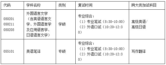 (1)专业笔试:外国语言文学综合知识及运用;英(日)汉篇章翻译。(满分:60分,时间:90分钟)。