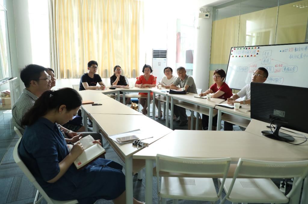 11:00来到文科楼131会议室进行深入交流。陈文涛经理介绍了浙江越秀外国语公司的基本情况,高度肯定我们的教学改革和理念,对教师的教学情况大加赞扬。